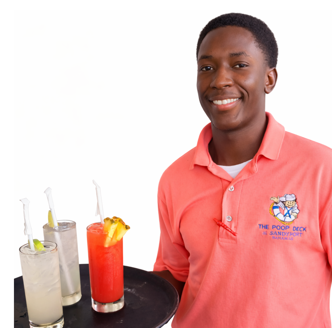 I'm a very bubbly person who loves to smile, meet new people, and educate customers about the island - the Poop Deck is the only restaurant offering dining on the beach.